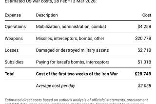 US spends $2.1 billion a day on the Iran War