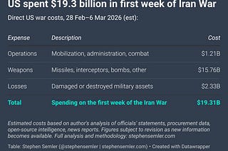 Iran War: Cost of the first week