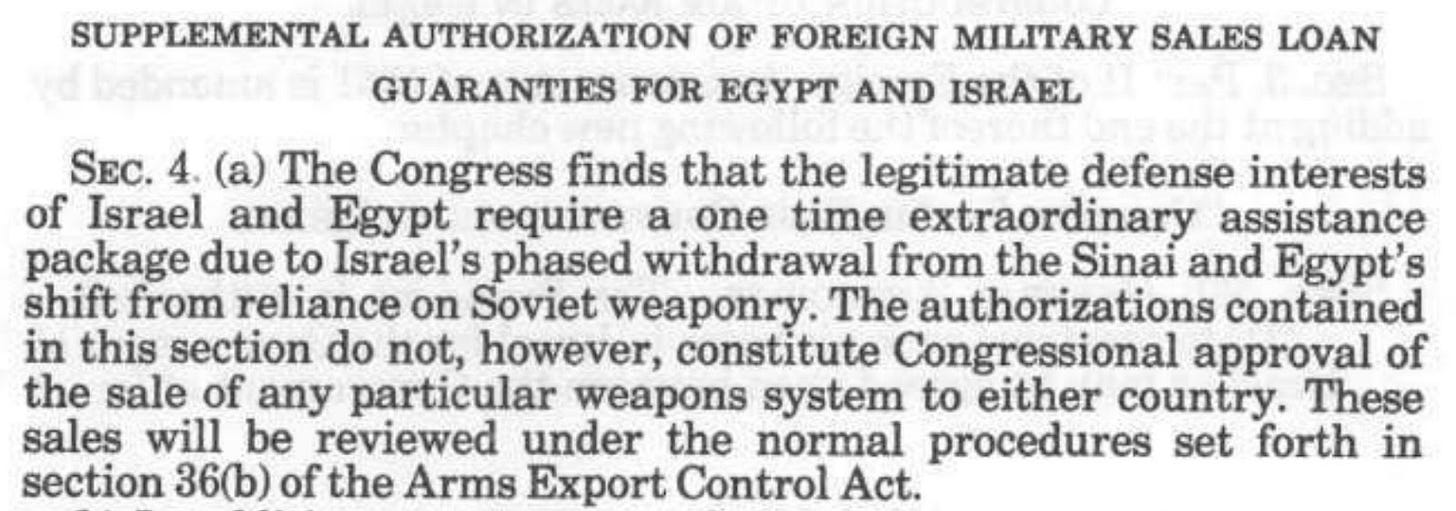 Of that amount, $8.7B is direct military aid. Another $5.4B in “operation and maintenance” and “procurement” funding under Title I “to respond to the situation in Israel.” Based on the way the bill is written, the intent of this funding is primarily to replace matériel transferred to Israel directly from US stocks, possibly under section 506(a)(1) of the Foreign Assistance Act of 1961. The bill raised the cap for this “drawdown authority” from $100M to $7.8B. In other words, the $5.4 billion is to pay for in-kind military grants — the funds cover the cost of additional arms transfers to Israel. The value of these transfers in FY2024 could end up being much higher than they amount appropriated in the bill for FY2024. There is reporting and testimony indicating that Israel has drawn from a US stockpile located in Israel (the US War Reserve Stockpile Allies - Israel, or WRSA-I). In a statement about the supplemental funding bill for Israel, Rep. Dina Titus wrote that the bill includes “$4.4 billion to replenish U.S. stocks of equipment sent to Israel through Presidential drawdown authority.” This is in-line with the stated intent of Biden’s original request: “ reimburse DOD components for defense services and military education and training provided to the government of Israel under section 506(a)(1) of the Foreign Assistance Act of 1961 (22 U.S.C. 2318(a).” The request and bill also waived restrictions on the amount and type of equipment the US can directly transfer to Israel, as well as the value of the concessions Israel provides in exchange: the bill struck “at least equal to the fair market value of the items transferred” and inserted “in an amount to be determined by the Secretary of Defense.” It also waived the amount of weapons the US can stockpile in Israel (in the WRSA-I), from which Israel can draw from upon approval by the US Secretary of Defense, effectively creating a “free-flowing pipeline to provide any defense articles to Israel by the simple act of placing them in the WRSA-I, or other stockpiles intended for Israel.”