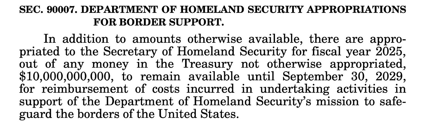 Section 90007 provides $10 billion to DHS for “undertaking activities in support of the Department of Homeland Security’s mission to safeguard the border of the United States.”